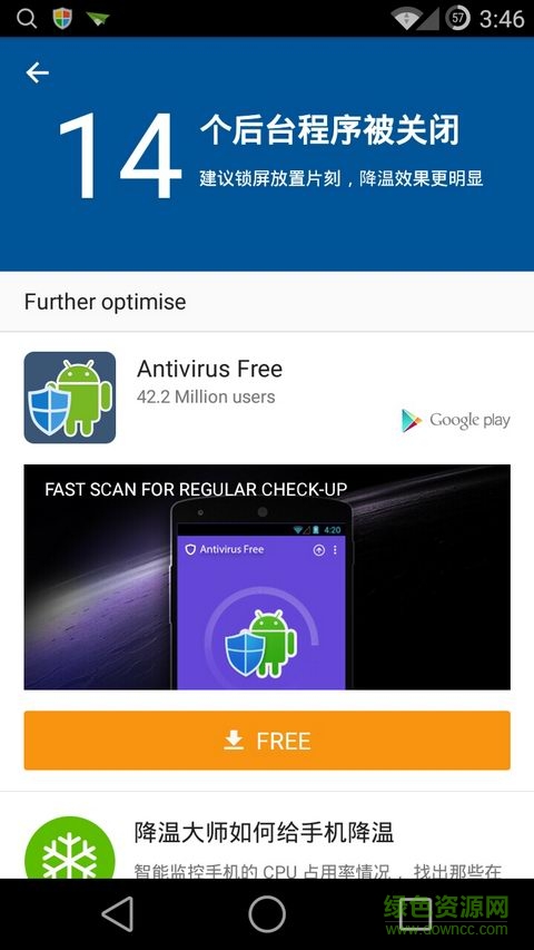 手機(jī)降溫大師是一款完全免費(fèi)的手機(jī)降溫工具,能夠隨時(shí)監(jiān)測(cè)手機(jī)溫度,自動(dòng)關(guān)閉多余程序,完美解決屏幕過(guò)熱、手機(jī)太燙等問(wèn)題,操作也很簡(jiǎn)單,有需要的朋友歡迎在綠色資源網(wǎng)下載體驗(yàn)!~