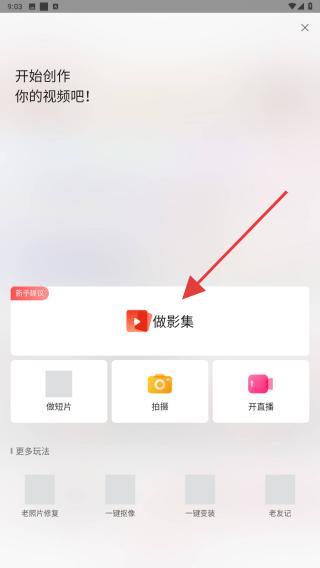 1、打開彩視App,在首頁點擊做影集的選項,進入素材選擇界面。