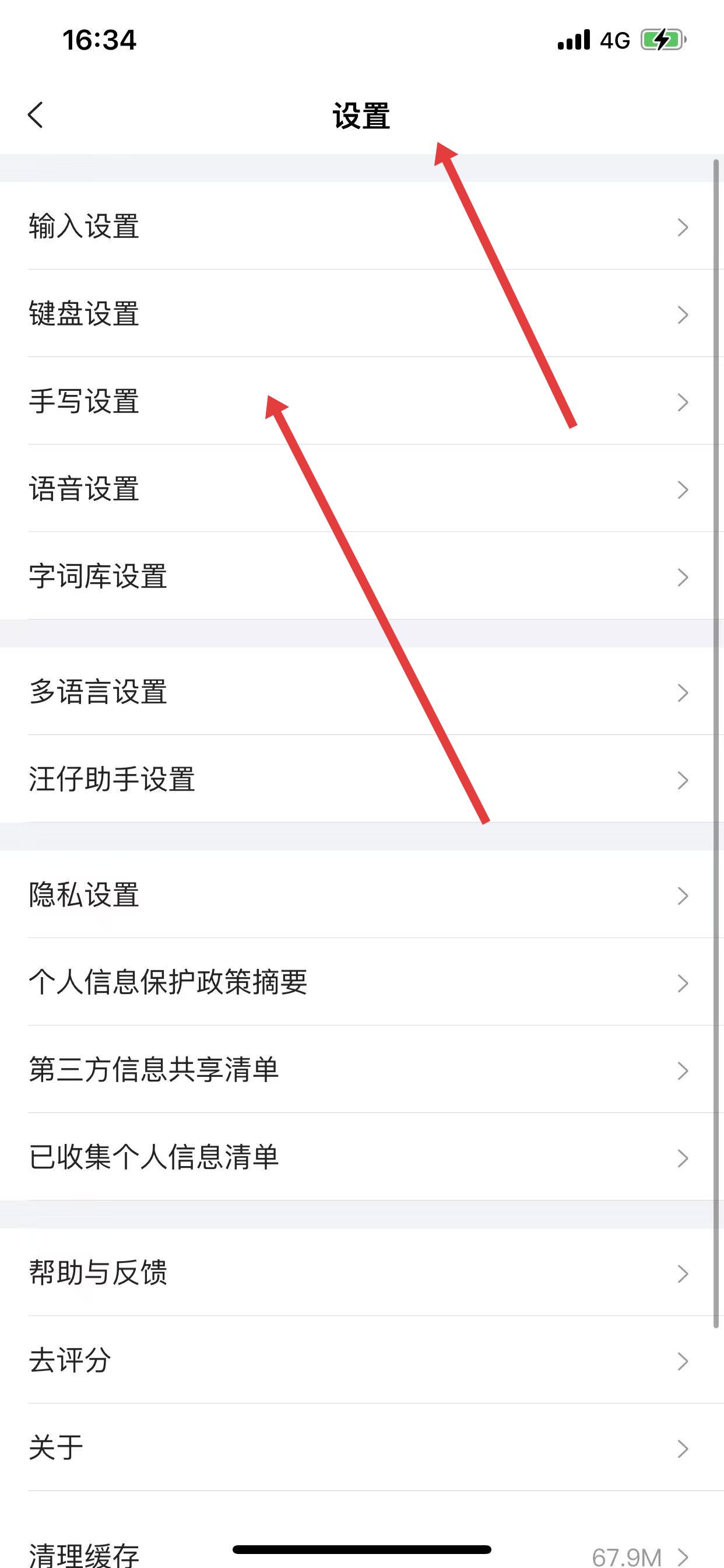 1、打開搜狗輸入法,進入設置頁面后,點擊手寫設置。