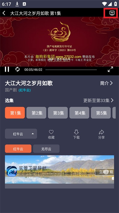 2、進(jìn)入到播放界面之后,我們需要點(diǎn)擊播放的視頻內(nèi)容,把【投屏】功能去調(diào)出來(lái);