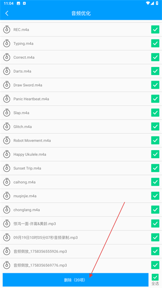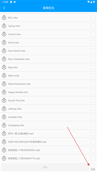 3、在音頻優(yōu)化的頁面內,點擊右下角全選的按鈕。