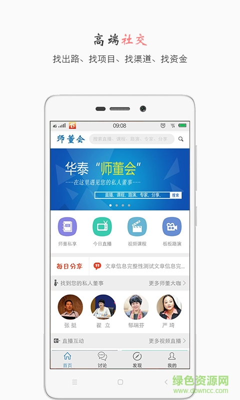 師董會(huì)app是一款視頻課程直播社交手機(jī)軟件,這里匯集了眾多私董、顧問(wèn)和專(zhuān)家,用戶(hù)可以找項(xiàng)目找渠道找投資,還可以和高層進(jìn)行互動(dòng),歡迎有需要的朋友到綠色資源網(wǎng)下載使用!