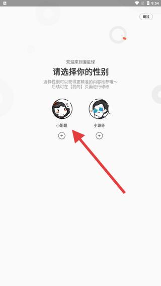 1、畫(huà)面呈現(xiàn)了軟件初始的頁(yè)面,用戶需要在此頁(yè)面選擇你的性別,能夠更精準(zhǔn)的推薦想看的內(nèi)容哦。