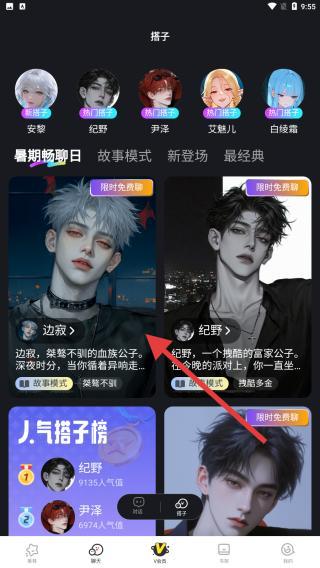 3、點(diǎn)擊聊天的頁(yè)面時(shí),會(huì)跳出陪你一起看漫畫(huà)的聊天搭子,在上方比較經(jīng)典的ip角色內(nèi)進(jìn)行選擇。