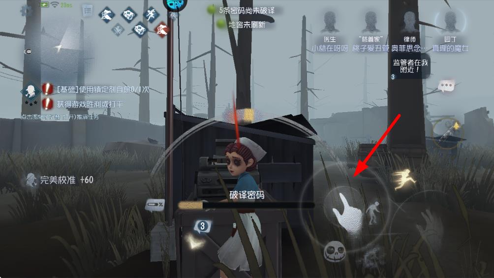 這個人物的作用是在遇到屠夫可以逃跑,點右上角的魔杖,可以在原地留下一個殘影,逃脫或者救隊友,并且會給一定時間的顯示屠夫的位置。