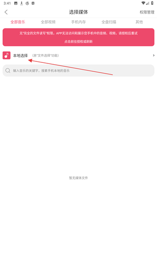 2、進(jìn)入選擇媒體的頁面內(nèi),用戶需點(diǎn)擊本地選擇的功能按鈕。