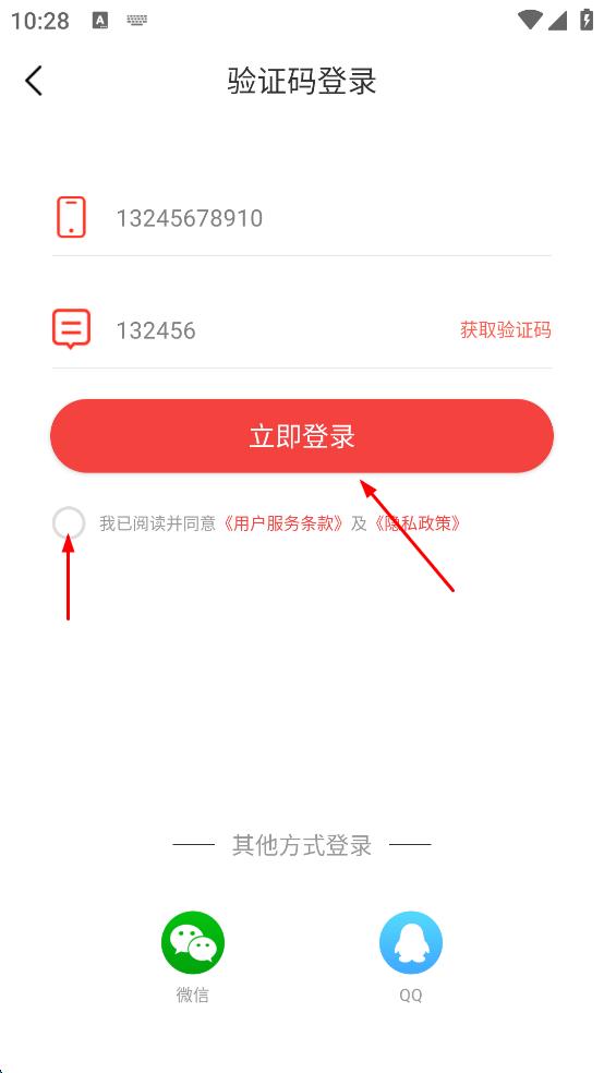 4、勾選“我已閱讀并同意用戶服務(wù)條款及隱私政策,然后點(diǎn)擊“立即登錄”,即可完成登錄。