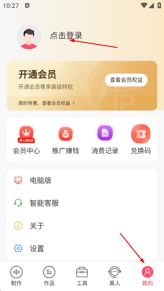 1、打開(kāi)語(yǔ)音合成助手,點(diǎn)擊頁(yè)面右下角“我的”,進(jìn)入個(gè)人頁(yè)面后,點(diǎn)擊上方“點(diǎn)擊登錄”。