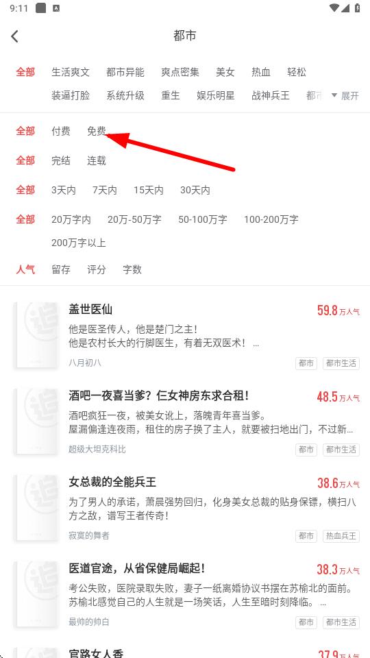 3、進(jìn)入分類頁(yè)面后點(diǎn)擊免費(fèi)篩選出免費(fèi)小說(shuō),選擇小說(shuō)后在閱讀界面找到聽(tīng)書功能開(kāi)啟免費(fèi)聽(tīng)書。
