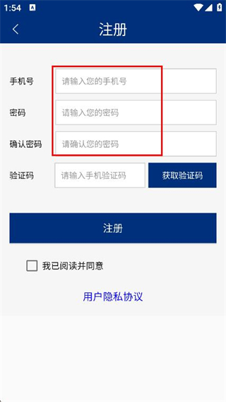 3、在注冊頁面的,輸入需要注冊的手機號和密碼。