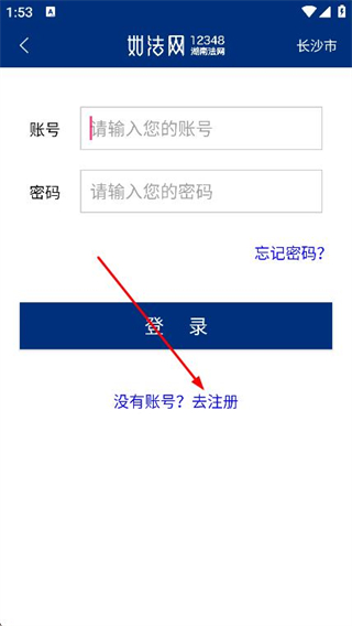 2、在登錄頁面中,點擊沒有賬號?去注冊選項。