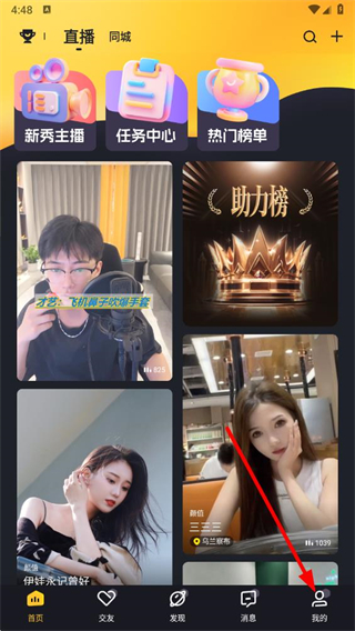 1、打開(kāi)來(lái)瘋直播app,點(diǎn)擊底部導(dǎo)航欄中的我的選項(xiàng),進(jìn)入個(gè)人相關(guān)頁(yè)面。