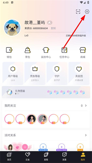 2、在個(gè)人頁(yè)面中,點(diǎn)擊右上角的設(shè)置圖標(biāo),進(jìn)入設(shè)置界面。