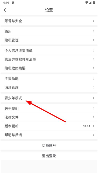 3、在設(shè)置界面里,找到并點(diǎn)擊青少年模式選項(xiàng)。