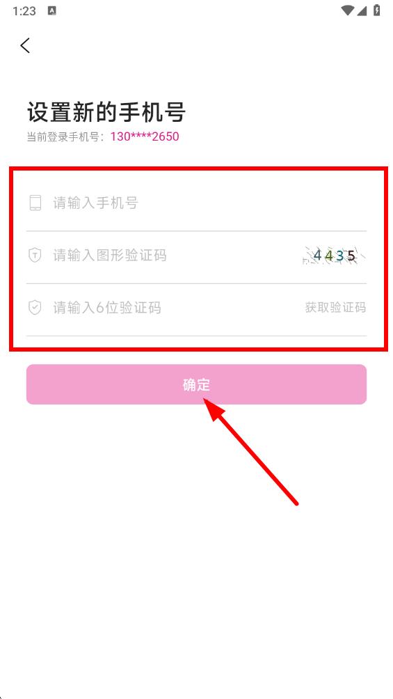 4、在設(shè)置新手機(jī)號(hào)的頁(yè)面,輸入新手機(jī)號(hào)、圖形驗(yàn)證碼以及獲取的短信驗(yàn)證碼,然后點(diǎn)擊確定,即可完成手機(jī)號(hào)修改操作。