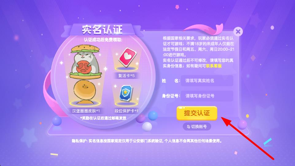 1、進(jìn)入實(shí)名認(rèn)證界面,在右側(cè)輸入框依次填寫真實(shí)姓名、身份證號 ,確認(rèn)信息無誤后,點(diǎn)擊提交認(rèn)證按鈕,進(jìn)行實(shí)名認(rèn)證信息提交。