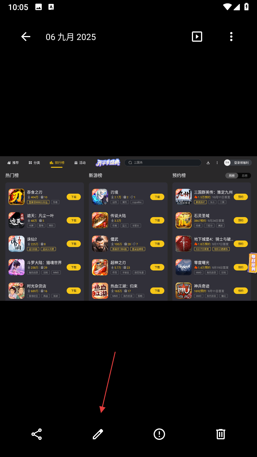3、在圖片查看界面,點擊下方筆的圖標(biāo),進入圖片編輯界面。