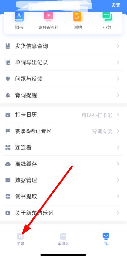 1、打開新東方樂詞App,點擊底部導(dǎo)航欄中的學(xué)詞選項。