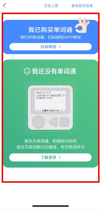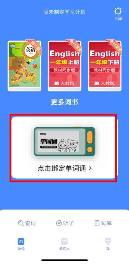 2、在學(xué)詞頁面中,找到并點擊點擊綁定單詞通區(qū)域。