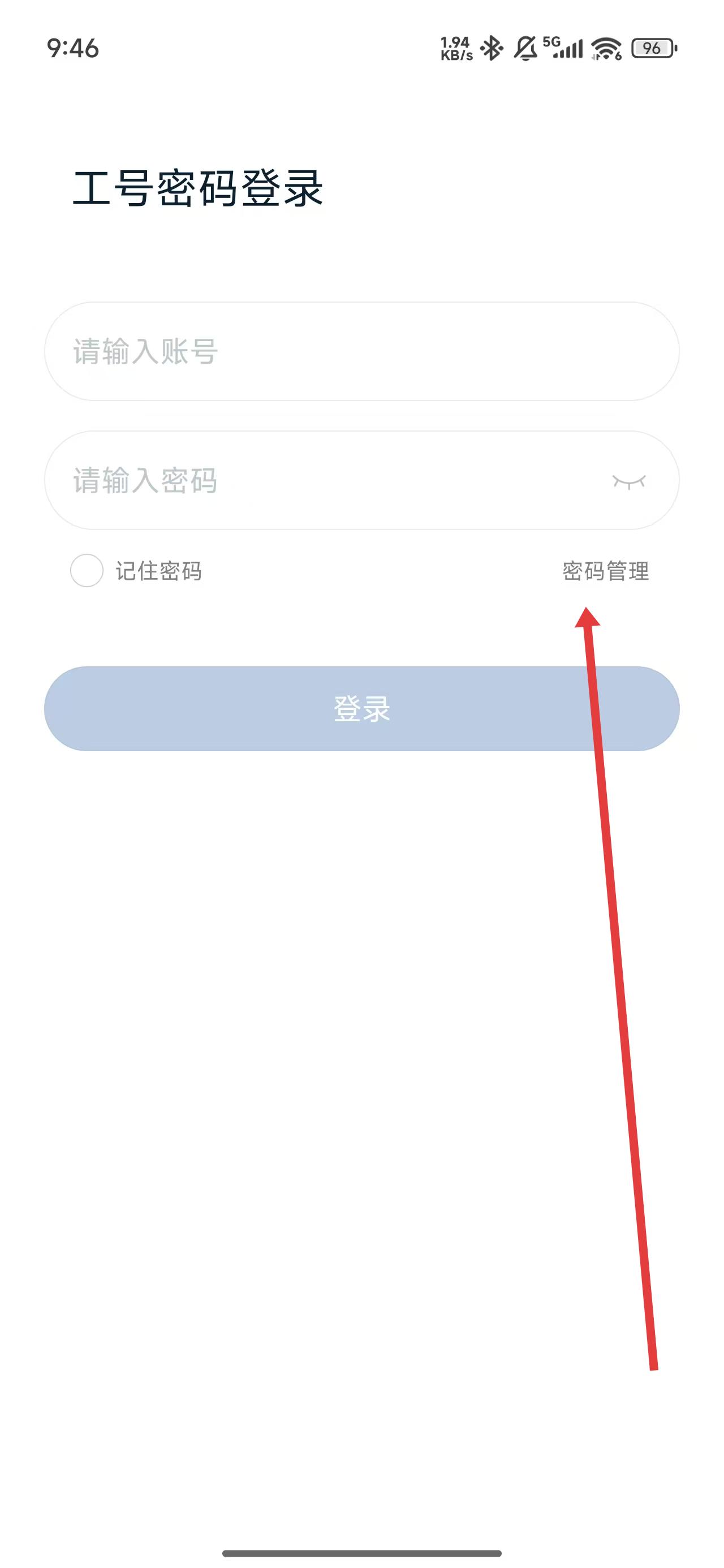 2、在進(jìn)入到登錄頁面中,若賬號(hào)被鎖定無法登錄,可點(diǎn)擊密碼管理解決。