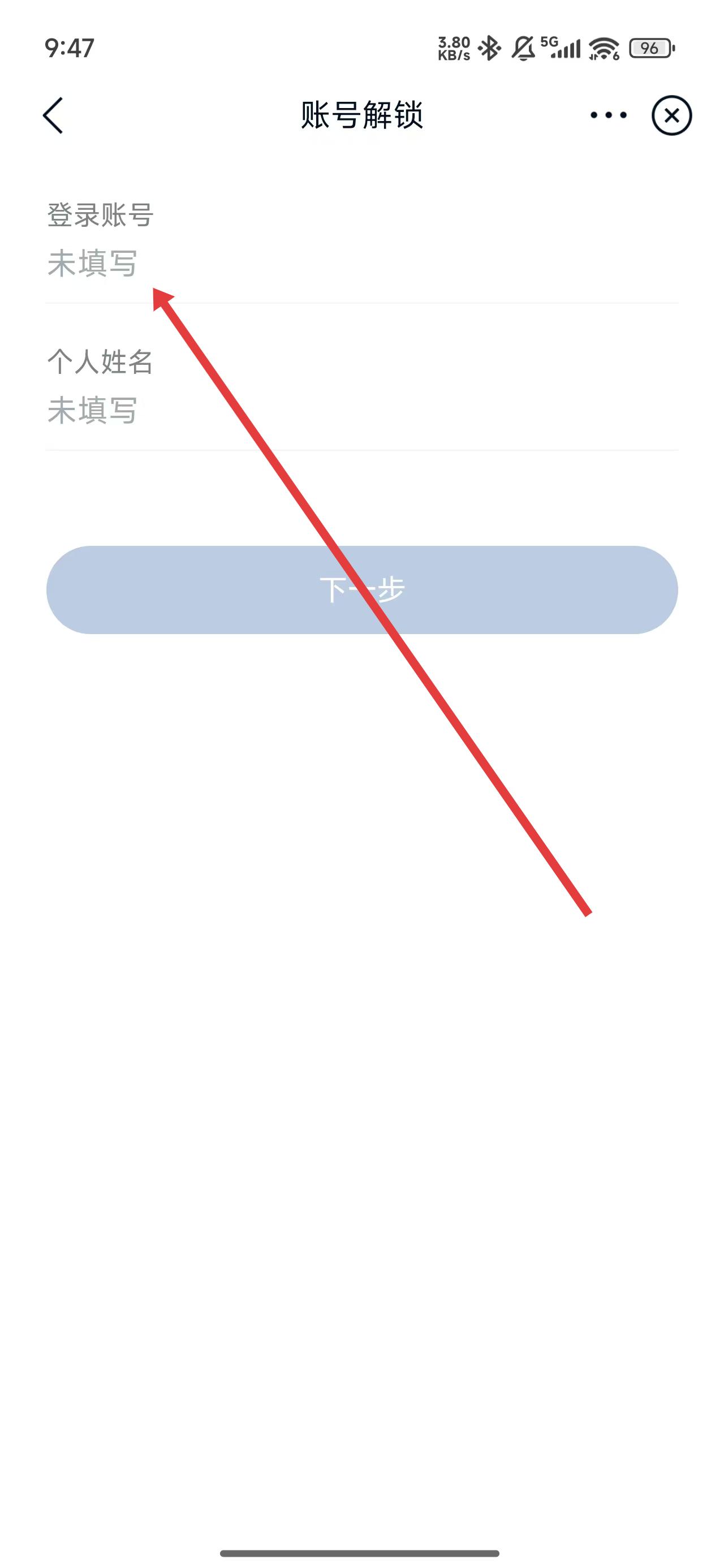 4、在跳轉(zhuǎn)到找回解鎖頁面后,點(diǎn)擊輸入框輸入對(duì)應(yīng)信息后完成解除鎖定操作。