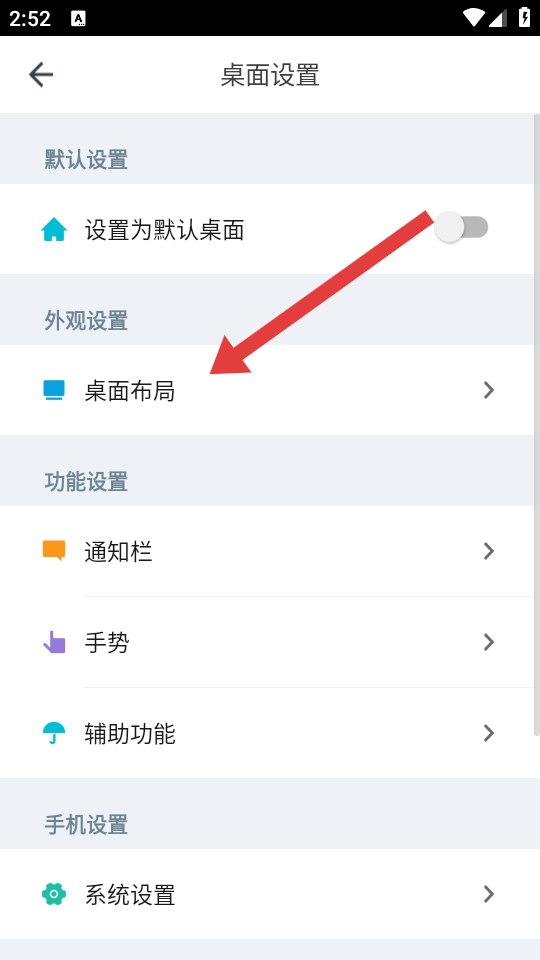 2、在桌面設(shè)置頁面中,找到桌面布局的選項并點擊,進入桌面布局設(shè)置頁面。