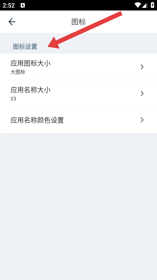 4、在圖標設(shè)置頁面,可以對應(yīng)用圖標大小等進行調(diào)整,完成圖標相關(guān)樣式的修改。
