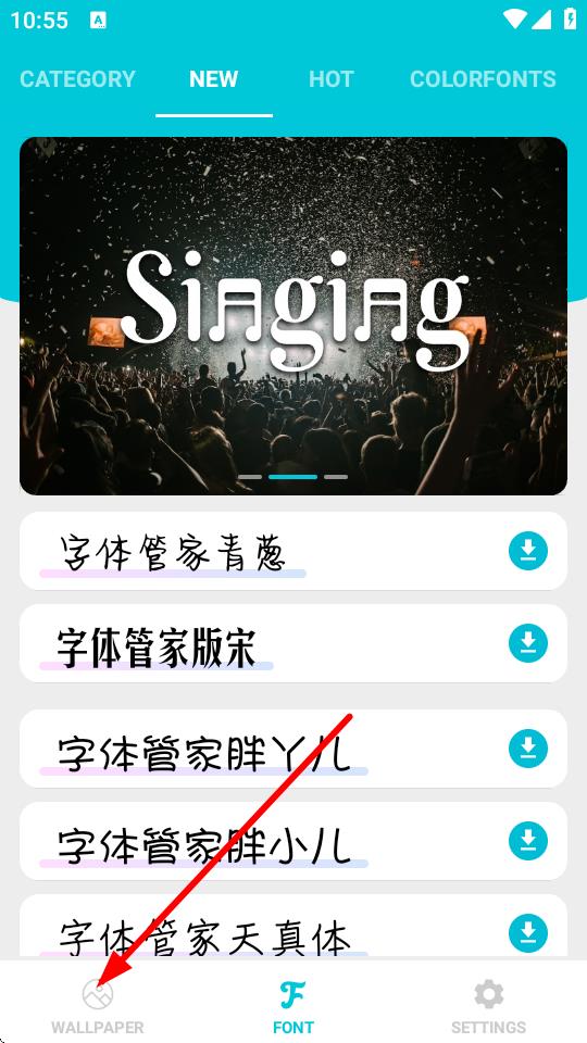 1、打開相關(guān)APP,點擊底部導(dǎo)航欄中的WALLPAPER選項,進(jìn)入壁紙選擇頁面。
