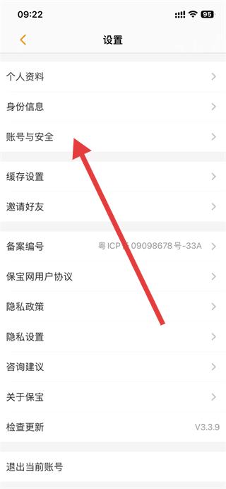 3、進(jìn)入設(shè)置頁(yè)面后,找到并點(diǎn)擊賬號(hào)與安全選項(xiàng)。