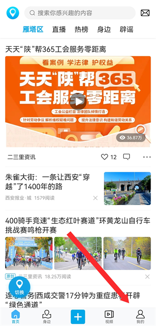 1、打開二三里app,在首頁(yè)點(diǎn)擊底部我的,進(jìn)入個(gè)人頁(yè)面。