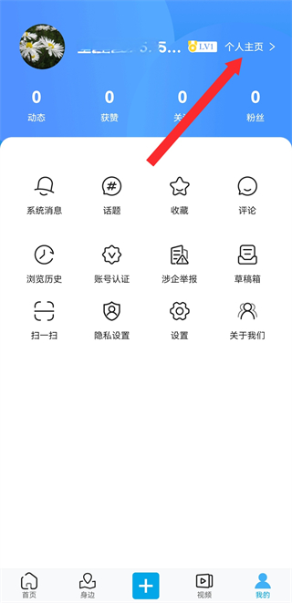 2、在個(gè)人頁(yè)面點(diǎn)擊個(gè)人主頁(yè)的按鈕,進(jìn)入個(gè)人主頁(yè)的界面。