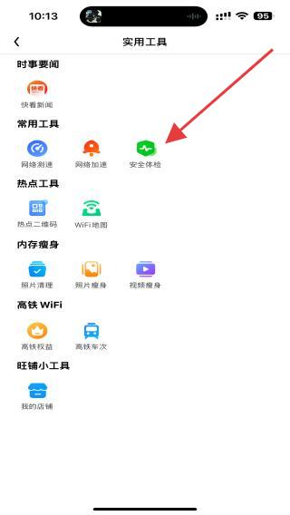 2、進(jìn)入實(shí)用工具的頁面內(nèi),點(diǎn)擊常用工具中的安全體檢即可跳轉(zhuǎn)至該頁面。