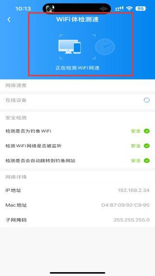 3、點(diǎn)擊后,即可開始進(jìn)行安全體驗(yàn)檢測wifi速度。