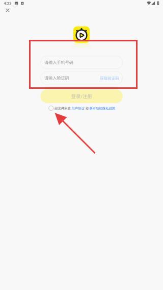 3、在登錄頁面:輸入要登錄的手機號碼,點擊獲取驗證碼,輸入收到的短信驗證碼并勾選用戶協(xié)議等。