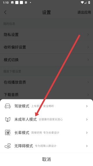 2、在要切換的模式中,可以選擇點擊未成年人模式進行切換操作。