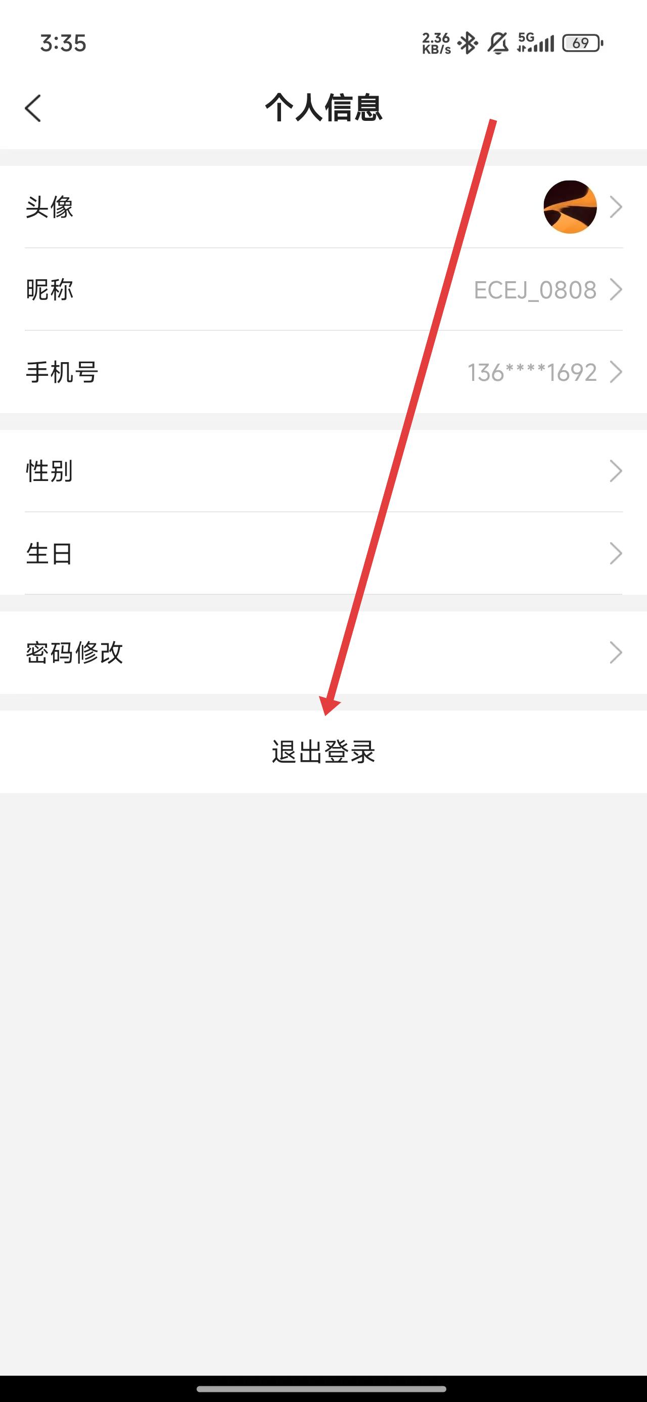 2、在進(jìn)入到個(gè)人信息后,可以點(diǎn)擊退出登錄進(jìn)行切換賬號(hào)的操作。