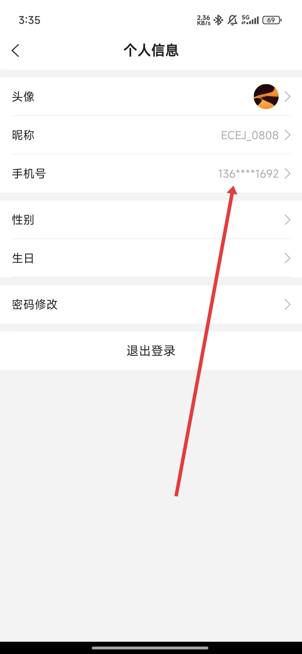 2、在進(jìn)入到個人信息頁面中,點擊手機(jī)號選項進(jìn)行更改操作。
