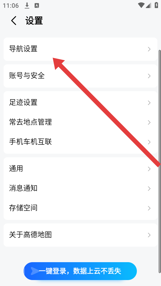 2、在個人設置的界面中,找到并點擊導航設置選項,進入導航功能設置頁面,定位聲音相關配置區(qū)域。