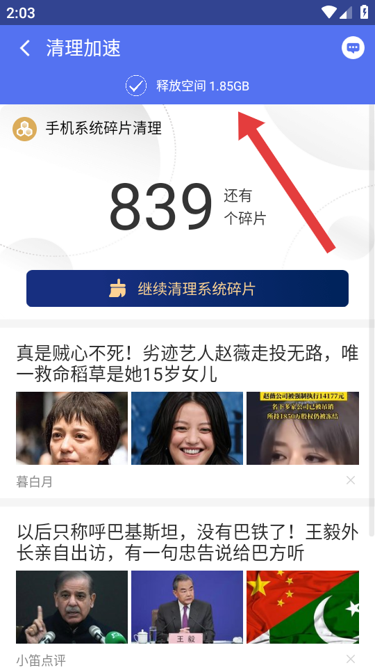 3、清理完成后,頁面會提示你釋放空間X.XGB,這樣就說明已經(jīng)成功完成垃圾的清理。