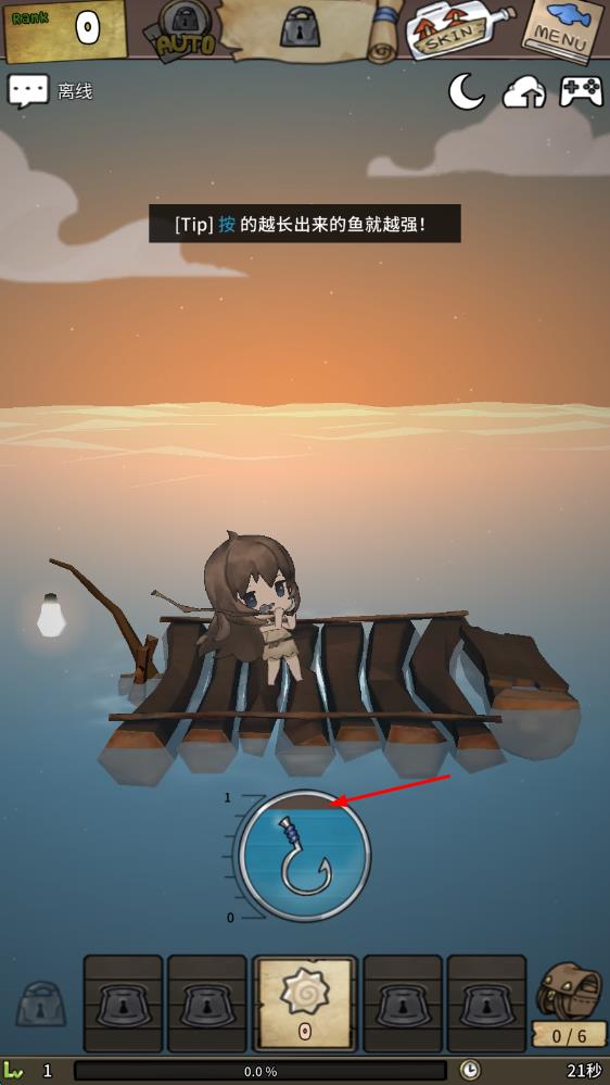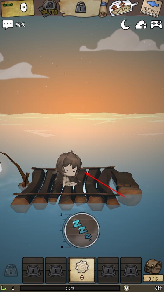 1、進入漂流少女國際服后,先熟悉海上操作方式,幫助被困少女在竹筏上開啟生存,通過釣魚獲取食物與基礎資源,初步適應海上漂流節(jié)奏。