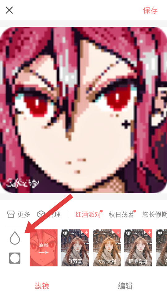 3、在圖片編輯頁面左下角,點擊水滴形狀的背景虛化圖標(biāo),開啟背景虛化功能。