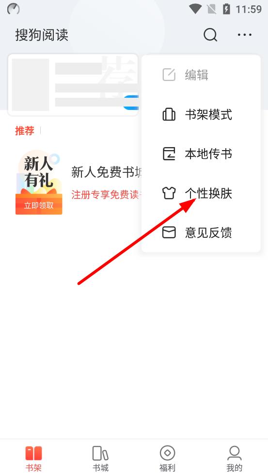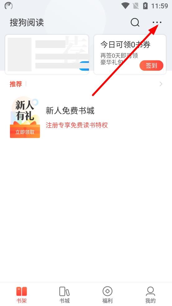 1、打開搜狗閱讀應(yīng)用,進(jìn)入主界面后,點擊右上角的三點圖標(biāo),這個圖標(biāo)集合了一些常用的功能設(shè)置選項,方便用戶快速進(jìn)行相關(guān)操作。
