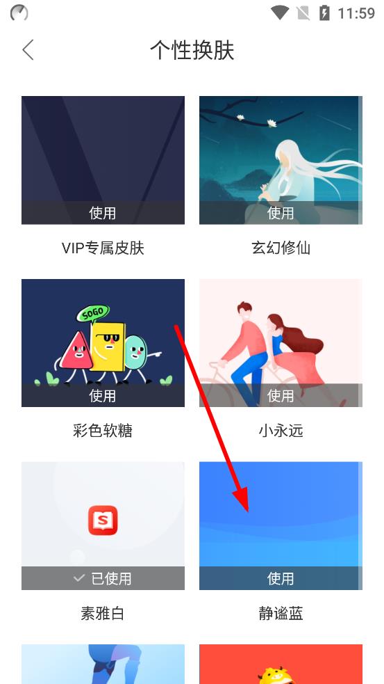 3、進(jìn)入個性換膚界面后,你會看到多種不同風(fēng)格的皮膚選項,每個皮膚都有對應(yīng)的背景圖,然后點擊該皮膚下方的使用按鈕,應(yīng)用的背景圖就會更換為你所選的樣式。
