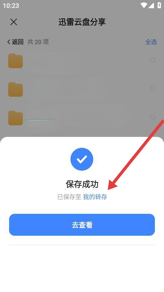 3、頁面提示保存成功,即完成文件夾轉(zhuǎn)存,可以點(diǎn)擊去查看前往我的轉(zhuǎn)存查看轉(zhuǎn)存的文件夾。
