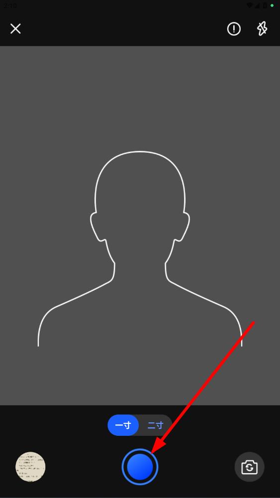 4、進(jìn)入拍攝界面,按照屏幕提示調(diào)整姿勢(shì),點(diǎn)擊下方藍(lán)色拍攝按鈕拍攝照片,完成證件照拍攝。