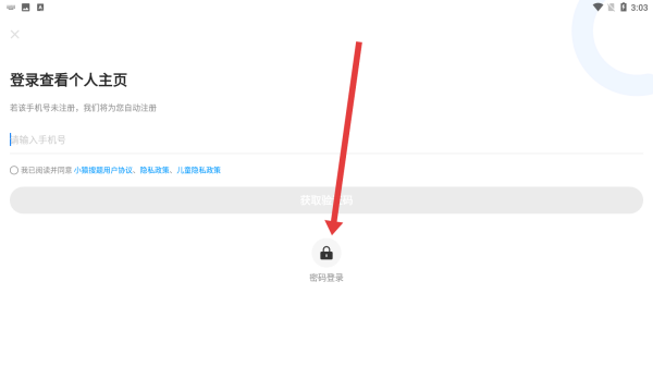 1、在登錄查看個人主頁界面,點擊中間的密碼登錄按鈕,切換至密碼登錄頁面,準備輸入賬號密碼以完成登錄操作。