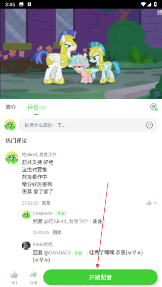 2、進(jìn)入視頻詳情頁后,點擊開始配音按鈕,進(jìn)入配音準(zhǔn)備界面。