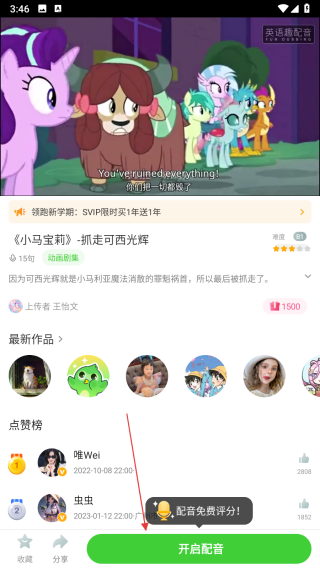 用戶可以選擇經(jīng)典片段進(jìn)行配音,從而在模仿中提升口語能力。平臺提供多種素材供學(xué)習(xí)者選擇,涵蓋不同類型的語境和對話場景。