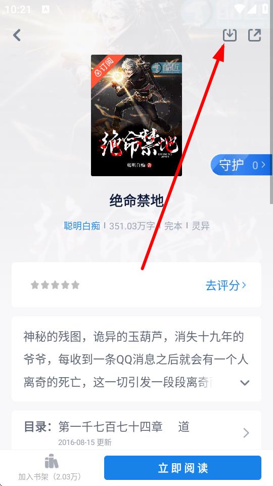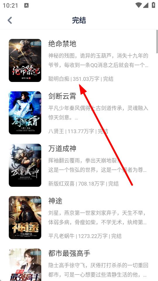 2、在完結(jié)頁面,選擇想要下載的小說,比如絕命禁地,點(diǎn)擊進(jìn)入小說詳情頁。