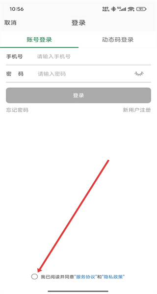 3、進(jìn)入到登錄頁面中,在登錄前需先點(diǎn)擊勾選下方我已閱讀并同意按鈕后操作。